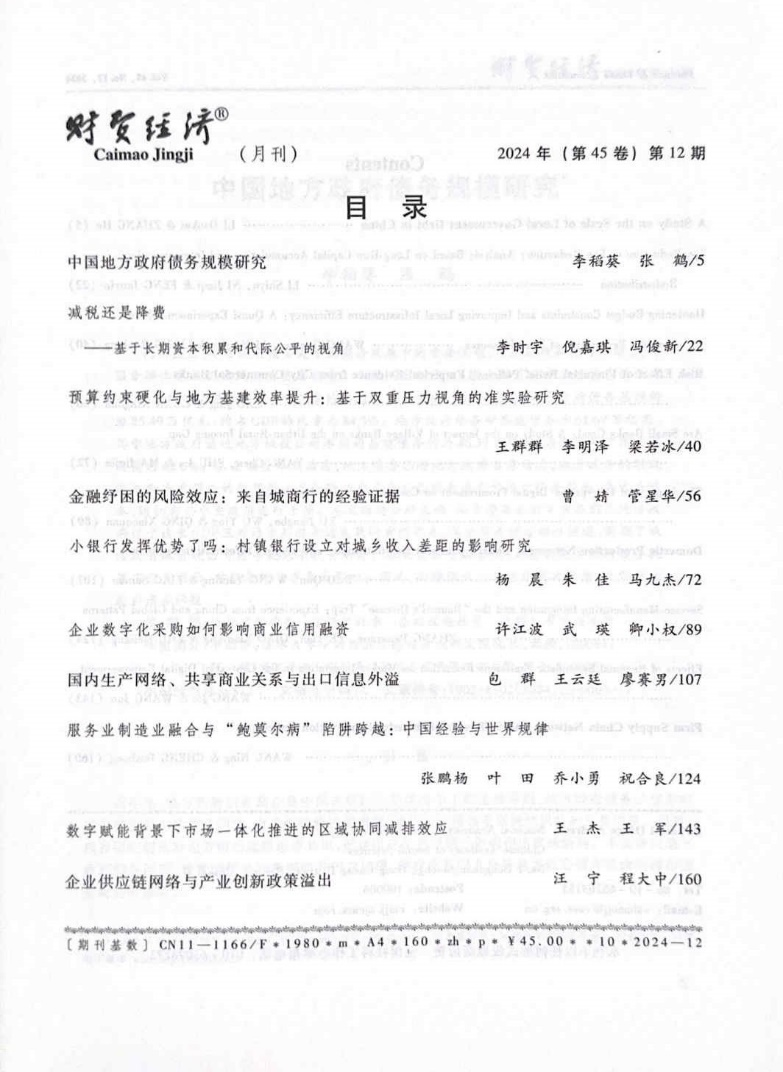 基于金融发展对收入不平等影响的长期学术争论,该论文从设立村镇银行这一“准自然实验”出发,评估了“小银行”对城乡收入差距的影响,并进一步探究了其传导机制和内在根源。研究发现:第一,整体来看,设立村镇银行并不能够缩小城乡收入差距,这为相关领域的长期讨论提供了一个扎实的中国证据;第二,机制分析发现,涉农产业基础薄弱和县域银行业的同质化竞争,是村镇银行发生“使命漂移”,进而推动城乡收入差距扩大的重要原因;第三,村镇银行“使命漂移”现象导致有限的金融资源从涉农产业部门流出,进而使农村居民收入呈现下滑趋势。据此形成的政策启示是,应对村镇法人银行进行总量控制、结构调整,并引导其回归支农支小的最初定位,重点加强对村镇银行资产业务监管,在农业大县或金融欠发达的区域进一步充分发挥村镇银行基层网点的作用。