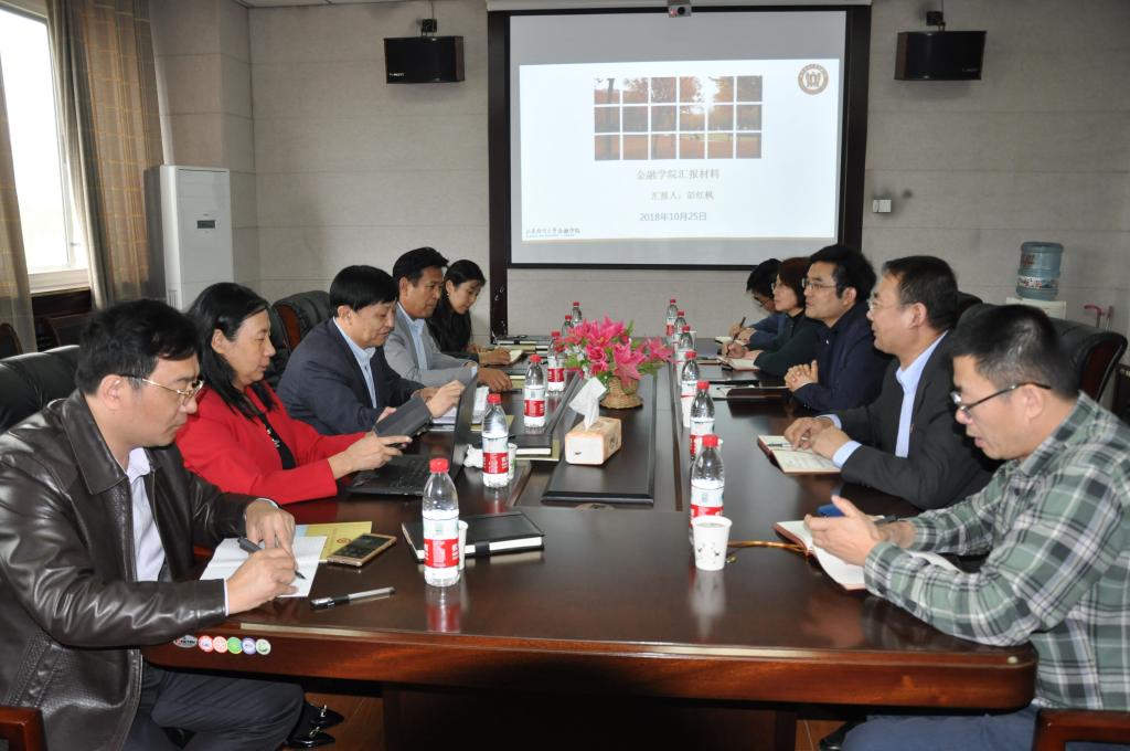 院长彭红枫向学校领导汇报了学院学科发展、师资队伍建设、人才引进和科研工作基本情况:今年以来学院在改善学院教师科研办公室环境,调整分配学院内部资源,梳理整合学院内部教学行政科研机构,打造学院科研学术平台、凝炼学术团队科研方向、积极融入国内主流学术圈、改革创新人才引进政策等方面做了的大量基础性的工作。通过这些工作我院在2018年取得了一些工作成绩,我院教师首次以第一作者或通讯作者在《经济研究》、Accounting and Finance 、International Review of Economics and Finance (SSCI 2区)发表论文,取得历史性突破;今年两金项目立项和科研成果获奖在数量和质量上都有了很大提升,学院整体呈现积极向上的势头。教职工的凝聚力和向心力也有很大改观。同时,学院也在发展过程中遇到了一些困难和问题,也希望得到学校领导和职能部门的帮助。