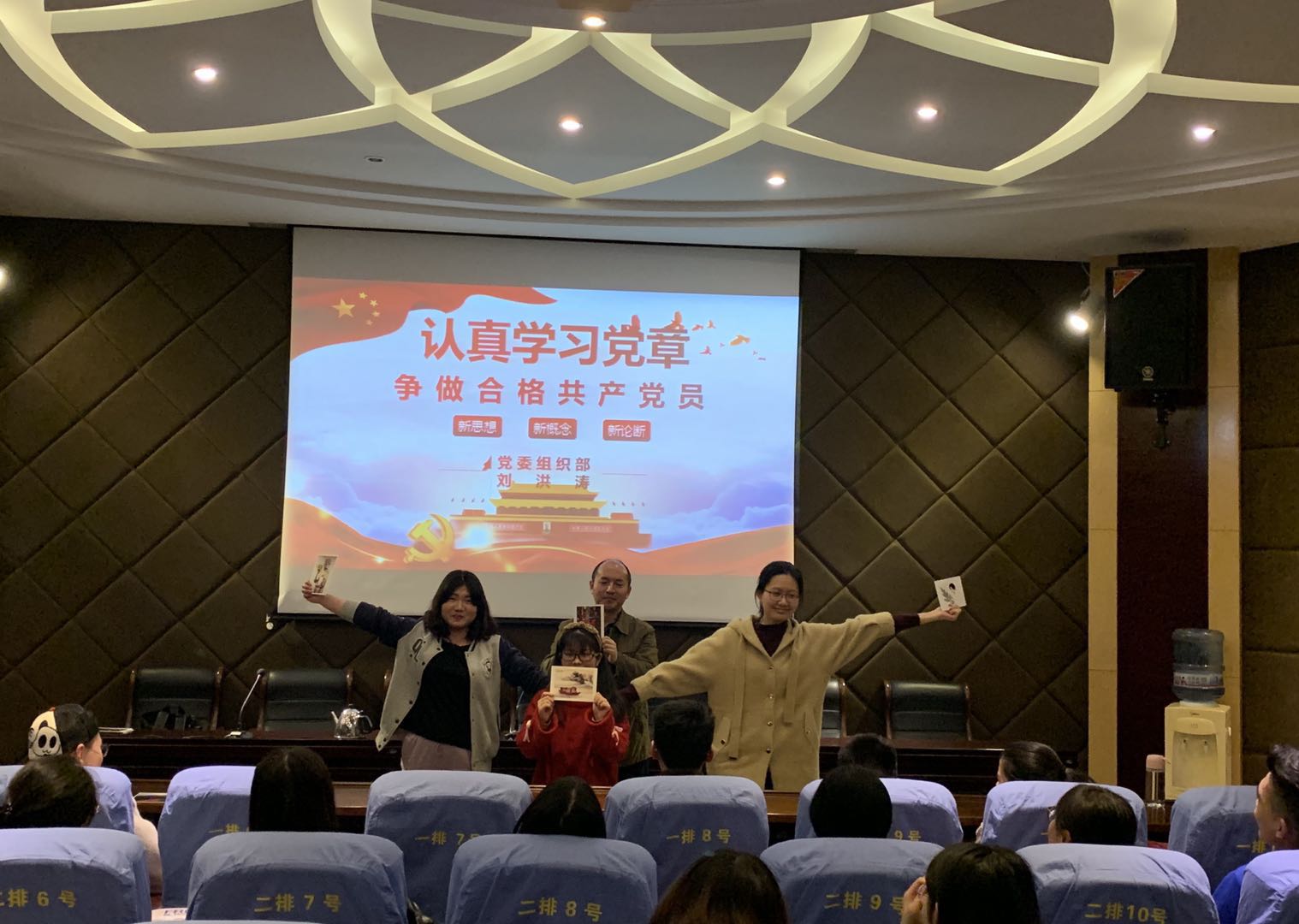 刘洪涛以《认真学习党章,争做合格党员》为题,结合党章学习,从“青年大学生为什么要入党”谈起,围绕“组织入党”与“思想入党”、党的建设的光辉历程与中国特色社会主义建设的伟大成就,利用“体验式、启发式、互动式、参与式”的授课方式,给同学带来了一堂别开生面的党课。