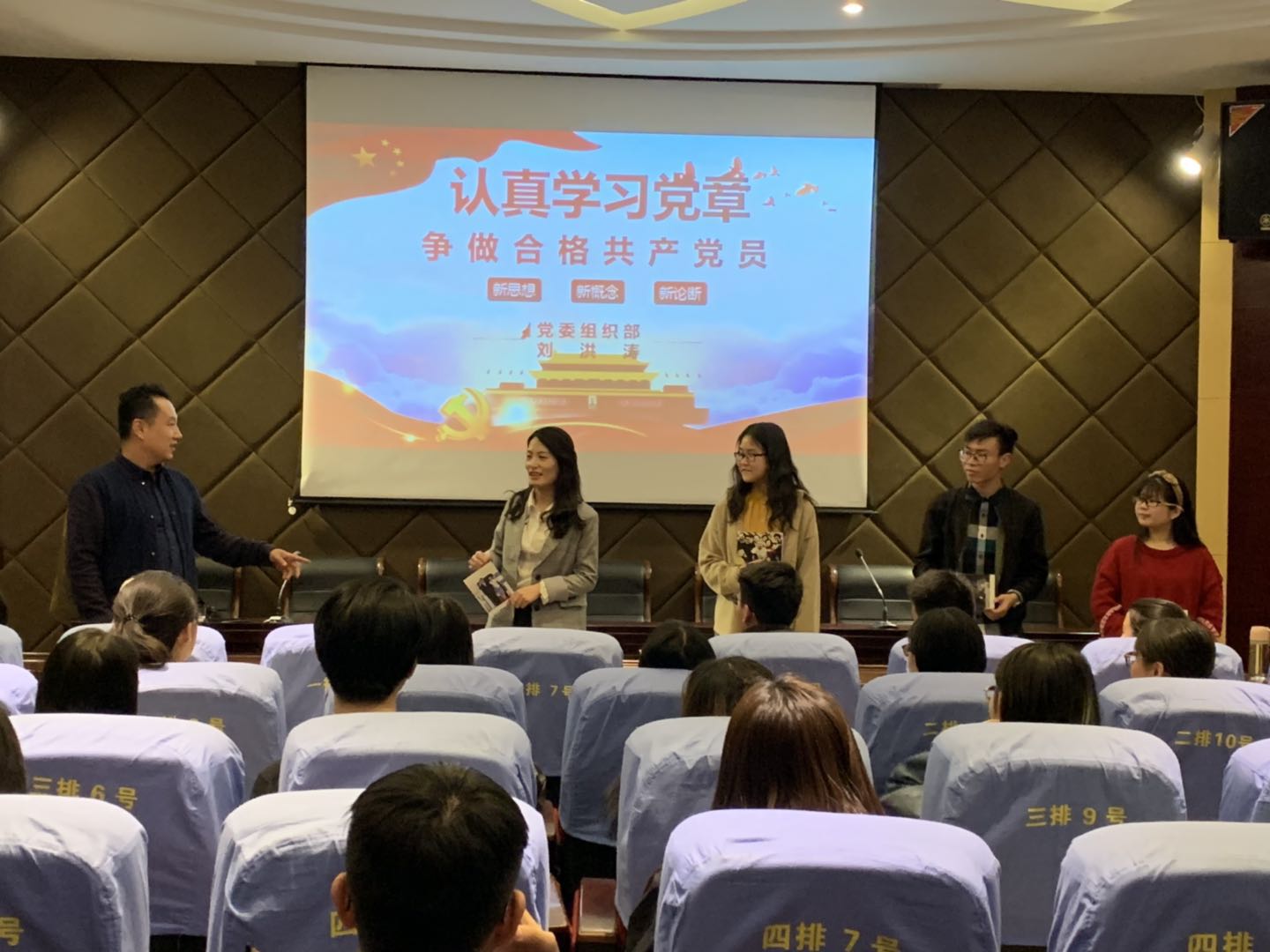 结合同学们的体验和收获,刘洪涛以党的历史为主线,为同学们系统讲解了党章的修订发展历程,号召党员们要认真学习党章,争做合格党员,不忘初心,坚定信仰,把的青春的美好年华投入到“共筑中国梦”的伟大征程中。