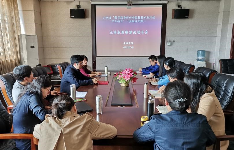(通讯员:李霞)3月26日下午,色情网站 在第三会议室召开了山东省“教育服务新旧动能转换专业对接产业项目”(金融专业群)立项表彰暨建设动员会。会议由冯玉梅副院长主持,彭红枫院长、各系主任和副主任参加会议。