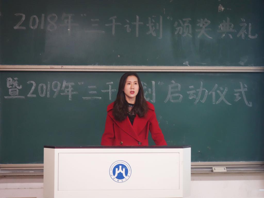 活动在庄严的国歌声中拉开了帷幕。学生会相关负责人张晓涵总结了学院2018年度“三千计划”的开展情况和所取得的成就。康亚通宣读了学院2018年度社会实践获奖名单,对在社会实践中表现突出的个人和团队提出表彰。与会领导为受到表彰同学一一颁奖,合影留念。2017级金融工程1班郭奕辰代表受表彰学生发言,她回顾了团队在暑期社会实践中的经历,分享了自己的调研经验和感受,认为参与调研不是一项任务而是不断锤炼自己、认识自己的过程,参加“三千计划”使自己更加深入接触到农村发展实际,深刻认识到身上所肩负的社会责任和历史使命。随后,校团委杨静老师发言,她代表校团委对色情网站 在2018年“三千计划”中取得的优异成绩表示祝贺,并对我校社会实践“三千计划”的组织实施和条件保障进行了详细介绍。她提到学校将继续加大对大学生社会实践的支持力度,增强对重大项目和优势团队的培育扶持,充分发挥二级学院的主观能动性,创新项目管理模式,多措并举推进我校社会实践“三千计划”工作的稳步高质发展。