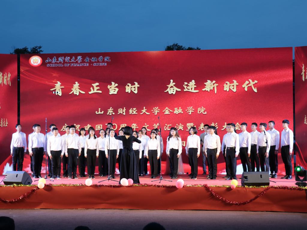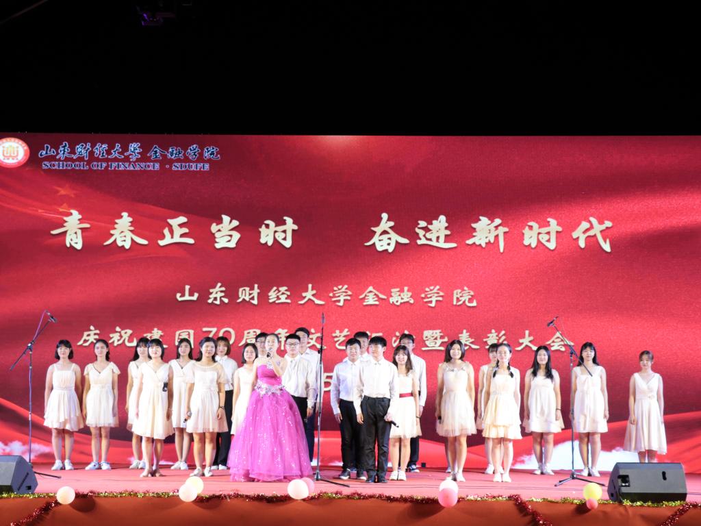 绽放韶华时篇章在我院模特队精彩的表演中拉开帷幕,歌曲《芦花》、舞蹈《Let’s party》,再次使全场沸腾。于卓民、徐海鑫等人带来诗朗诵《金融是一条河》声情并茂的讲述了我院发展奋进的光辉历史,激励新一代金融人奋发图强,积极探索,创造学院新的辉煌。最后,全体演职人员合唱《我和我的祖国》,爱国情绪引得全场共鸣,大家共同为祖国歌唱,表达对伟大祖国的衷心依恋和真诚歌颂。