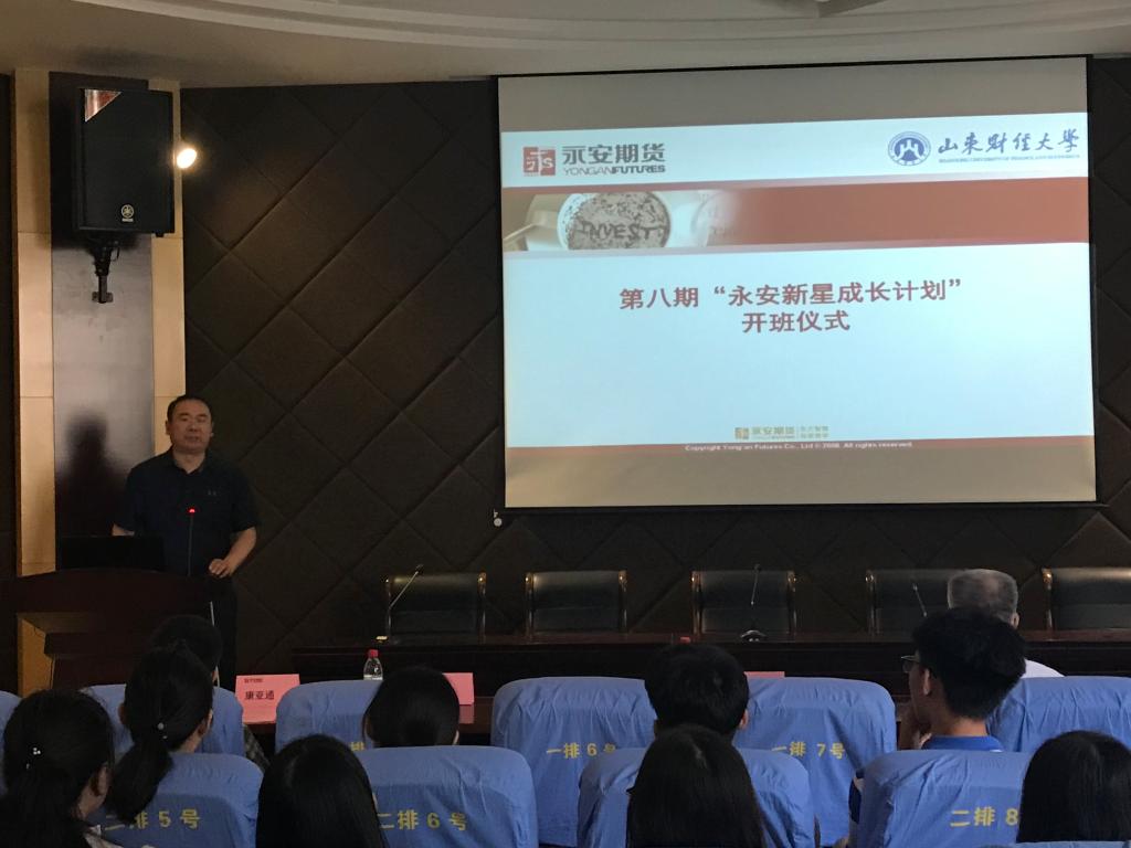 李庆国代表永安期货发言,他简要介绍了中国期货行业发展变化和永安期货的发展概况,培训班对于期货行业的人才储备和发展具有重要意义,他希望学员们加强沟通交流,掌握期货知识和技能,为期货行业的发展做出贡献。永安期货优秀学员、校友代表王秀萍发言,她分享了入职永安期货以来的收获和心路历程,感恩母校对自己的培养,同时永安期货完善畅通的培训机制和人才晋升渠道给予她很多机会和挑战,他鼓励同学们不忘初心,扎实刻苦学习专业知识,争取在职场中崭露头角。随后,夏明杰给同学们上了第一堂人生规划课程。
