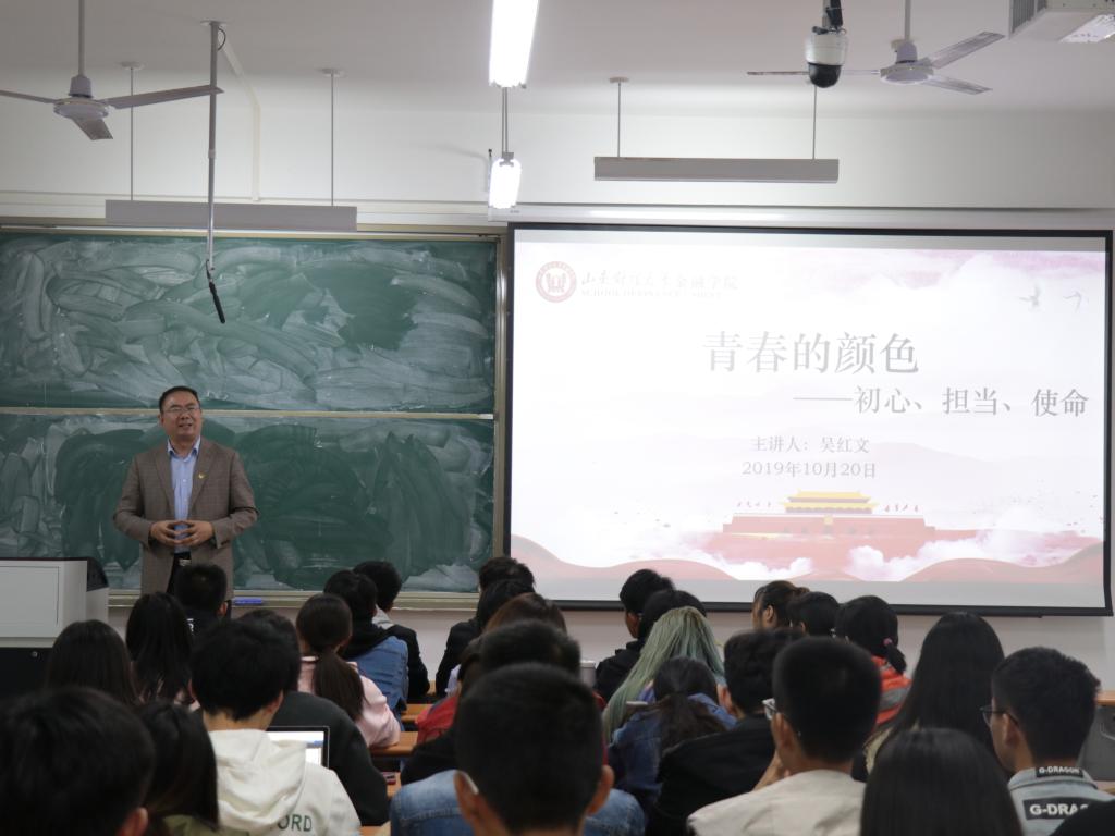 10月20日晚,色情网站 在圣井校区7号楼举办第十七期金融学人大讲堂活动,本次讲座的题目是青春的颜色——初心,担当,使命,由色情网站 党委书记吴红文主讲。色情网站 主要学生干部及部分同学参加。