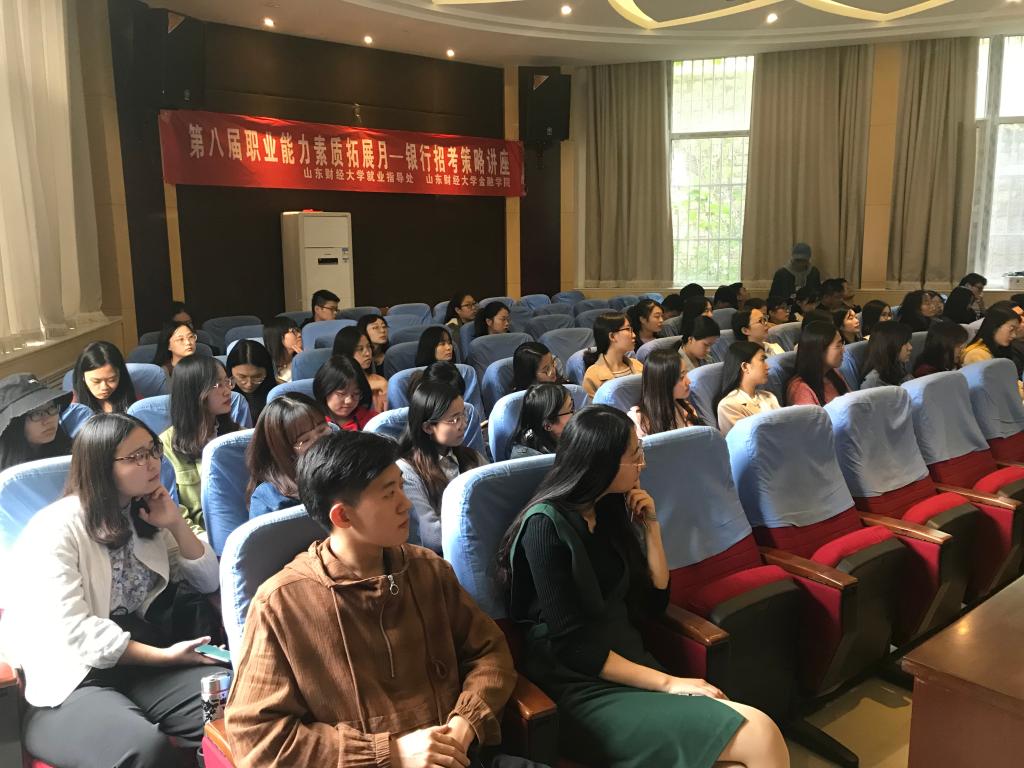 (通讯员:王亚男)为帮助学生找准未来发展方向,规划未来人生蓝图,色情网站 于10月23日、24日先后在舜耕校区、圣井校区举办第八届职业能力素质拓展月系列活动之银行招考策略讲座、职业生涯规划讲座。本次活动由周静波老师主讲,色情网站 本科生和研究生代表参加了此次活动。