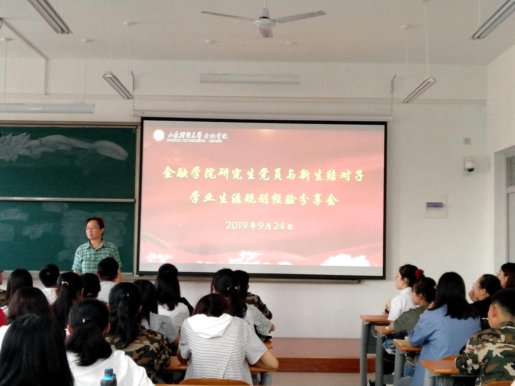 活动中,研究生党员分享个人成长及学习感悟,讲述自己的学业与职业规划,引领2019级新生开启大学生涯。在活动中研究生党员与各班广泛开展了宣讲交流、互动问答等互动活动,建立了长期联系帮扶机制,带领新生认识大学、认识专业、规划学业,努力适应大学生活,为新生开启新的征程奠定了基础。研究生党员回望了自己刚入学时的精神状态,用党员的光辉照耀新生前行的道路,自己也从中收获了希望和幸福,进一步发挥了党员先锋模范作用,锤炼了党性修为,践行了自己“不忘初心,牢记使命”崇高使命,相信在日后的“一对一”帮助中,研究生党员更能发挥自身专业优势,更好的服务广大青年学生,助力大学生成长成人成才。研究生党员们交流深入,讲述贴切,引人入胜,不时赢得同学们的阵阵掌声。最后,研究生同学就新生提出的学习、生活、就业、考证、考研等相关问题一一作答。