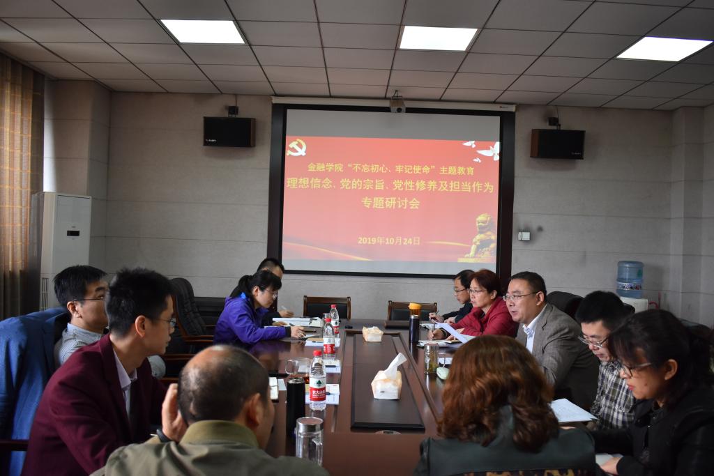 (通讯员:邵珠建)10月25日,色情网站 在舜耕校区第三会议室召开“不忘初心、牢记使命”主题教育之理想信念、党的宗旨、党性修养及担当作为专题研讨会。学院党委书记吴红文,副书记范志毅、康亚通,副院长葛永波,党委委员、工会主席杨丰国、教工第二支部书记王倩、教工第三支部书记邹昆仑、研究生第四支部书记赵宇洋、团委书记陈静、学工办主任孙琦、党委专职组织员李勇、辅导员邵珠建参会。