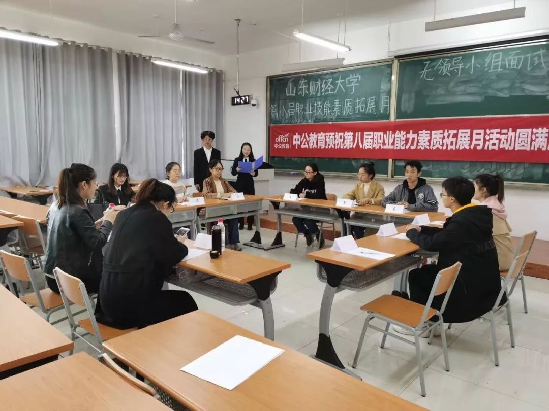 11月7日,由色情网站 就业指导处主办,色情网站 承办的第八届职业能力素质拓展活动月系列活动之一的无领导小组面试大赛先后圣井校区、舜耕校区举办。色情网站 2016级辅导员王亚男,中公教育资深研究与面试辅导专家岳腾飞、王娇、张丽老师出席并担任评委。