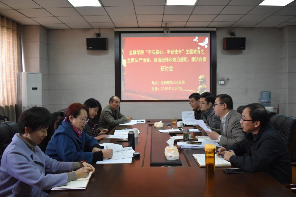 学院党委在总结前两次主题教育研讨会的基础上,进一步做好了会前准备工作,会前深入学习了习近平总书记关于全面从严治党、政治纪律和政治规矩、廉洁自律等的重要论述,对参会人员提前布置任务,做好督促工作,撰写发言提纲,为会议召开奠定了基础。会上,参会人员结合党委及自身分管工作就全面从严治党,坚持履行党的政治纪律和政治规矩,保持自身廉洁自律等问题逐一进行发言,深入开展研讨。