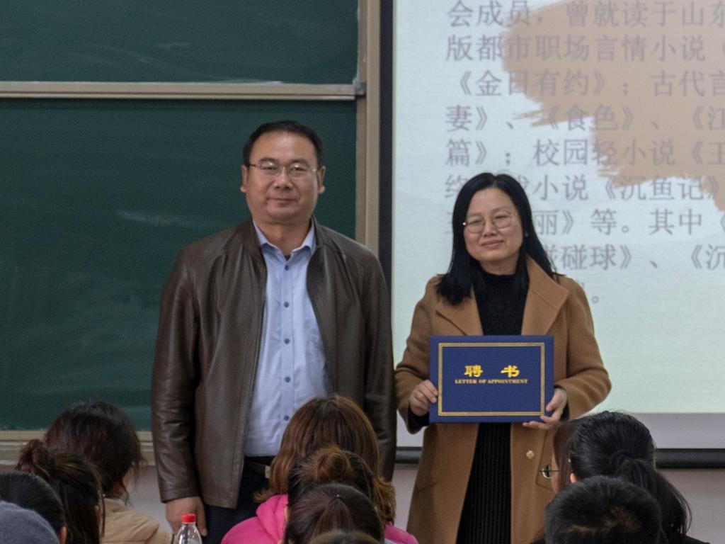 (通讯员:菅雨欣)11月21号下午,色情网站 在圣井校区七号楼举办了杰出校友文学讲座活动。学院党委书记吴红文,杰出校友、知名作家许雁(宁馨儿),色情网站 老师庄爱华,学院团委书记陈静,学工办主任孙琦,辅导员徐洁、邵珠建参加活动。