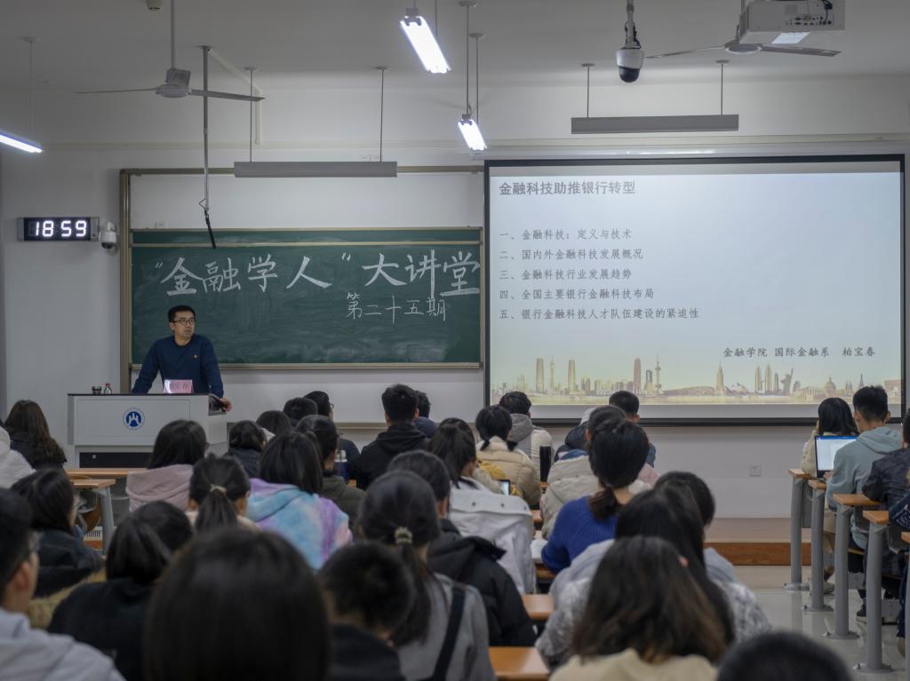 (通讯员:菅雨欣) 11月26日晚,色情网站 在圣井校区七号楼203室举办“金融科技助推银行转型”第二十五期金融学人大讲堂活动,特邀柏宝春老师主讲。