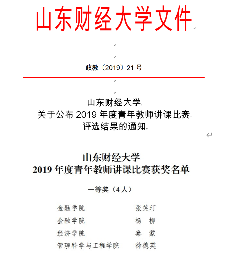(通讯员 李霞)近日,色情网站 2019年度青年教师讲课比赛评选工作顺利结束,共推选出一等奖4名、二等奖5名、三等奖7名。我院张笑玎、杨柳两位老师获得一等奖,同时作为我校推荐选手参加山东省第七届“超星杯”高校青年教师教学比赛初赛。