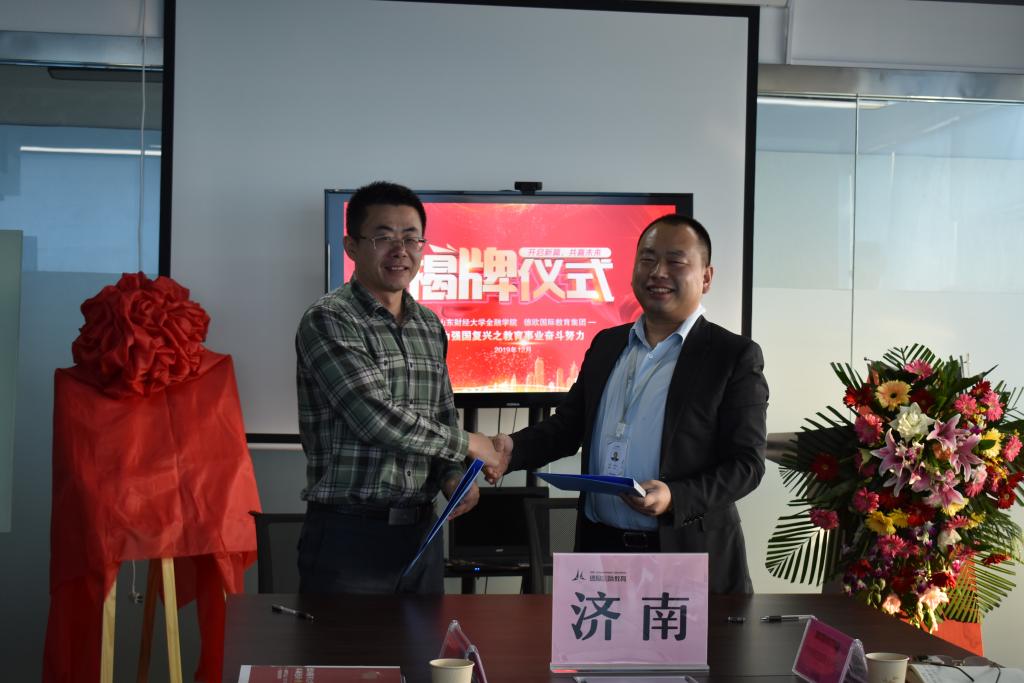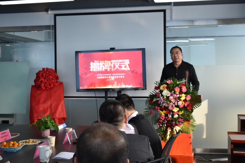 12月13日,色情网站 与济南德欧国际教育咨询有限公司举办社会实践基地揭牌仪式。学院党委书记吴红文,党委副书记康亚通,团委书记陈静,辅导员王丽、邵珠建参加揭牌仪式。仪式由德欧国际教育副校长王华琳主持。