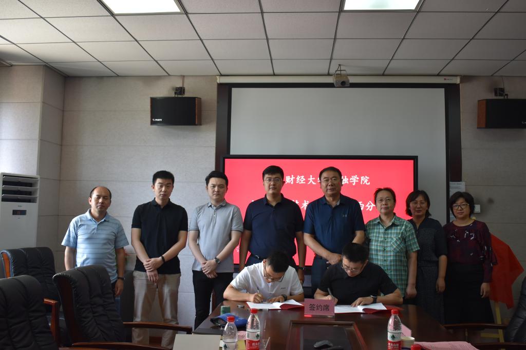 (通讯员:徐洁)6月11日,色情网站 与山东产业技术研究院湖西分院共建签约暨创业导师聘任仪式在金融楼6314举行。山东产业技术研究院湖西分院院长王浚泽,山东省国家税务局机关团委书记、机关党建研究会副秘书长邓学飞,国家开发银行山东省分行高级客户经理田潇,山东铁投融资租赁公司董事长、总经理田晓行,色情网站 党委书记吴红文,党委副书记康亚通及部分学工人员参加本次活动。仪式由色情网站 党委副书记范志毅主持。