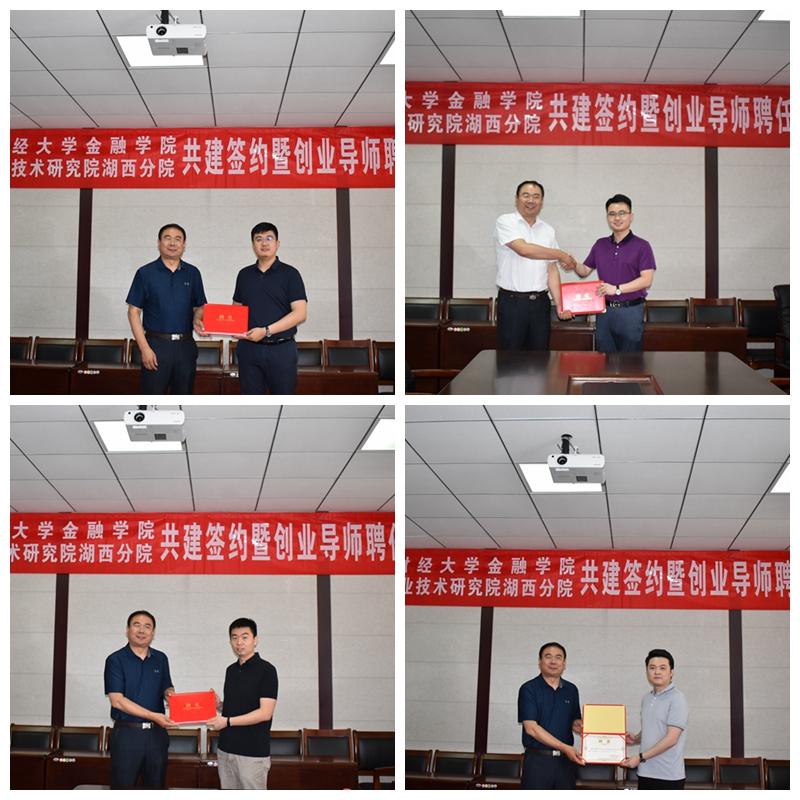 随后,康亚通与山东产业技术研究院湖西分院签署社会实践基地协议,吴红文与王浚泽为社会实践基地和“三全育人”教育实践基地揭牌,并为王浚泽、邓学飞、田潇和田晓行颁发色情网站 就业创业导师聘书。
