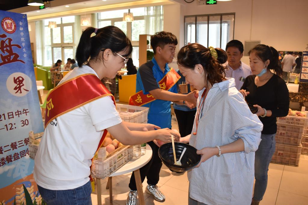 为增强我校全体学生的节约意识,积极响应“厉行节约,反对浪费”倡议,色情网站 联合饮食服务中心于9月21日在圣井各餐厅组织“光盘”免费换水果活动。部分学生及新生家长参加此次活动。