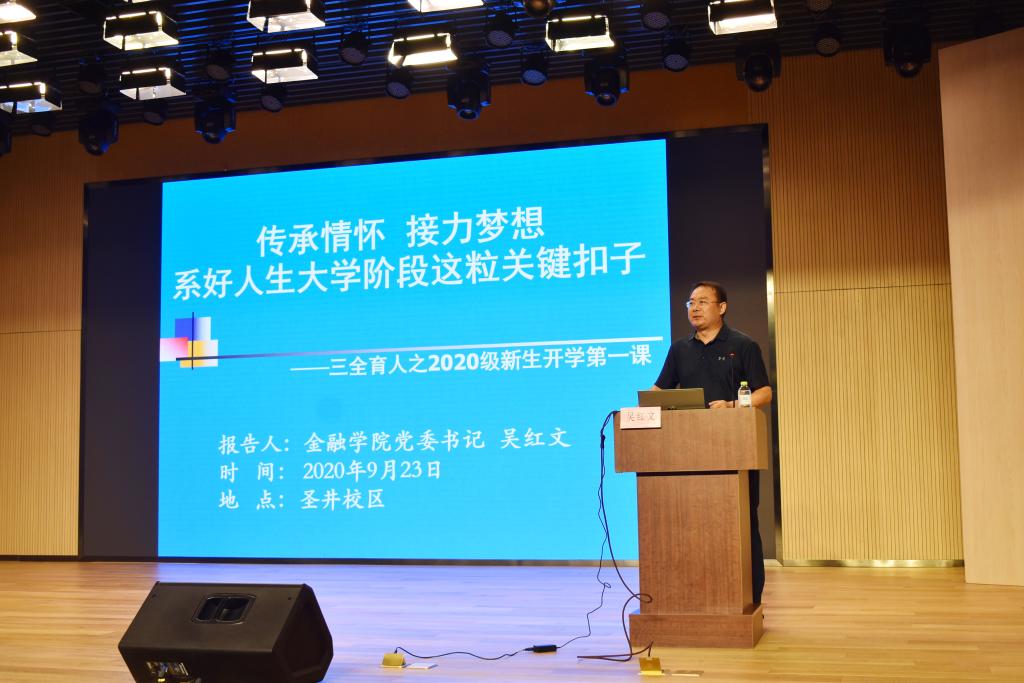(通讯员:王姝琪)为帮助新同学全面适应大学生活,做好思想政治教育工作,9月23日晚色情网站 党委书记吴红文在圣井校区文化活动中心多功能厅举办以“传承情怀,接力梦想,系好人生大学阶段这粒关键扣子”为题的新生报告会。2020级全体新生现场聆听报告。