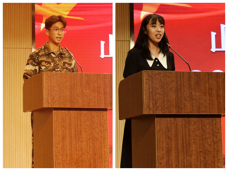 2018级学生代表、学生会主席周欣圆对2020级“萌新”表示诚挚欢迎。她认为即将到来的大学生活是自己的,未来完全掌握在你们自己手中。她希望同学们能够利用大学四年的时间充实自己、提高自己,并将自己山财金融人的身份铭记于心,用青春来诠释曾经的誓言,用汗水来锻造明日的辉煌。