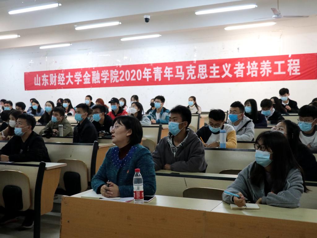 (通讯员:杨文东)为增强“青马工程”培训班学员对马克思主义的深入了解,10月29日下午,色情网站 于5号教学楼306室举办第二十八期“金融学人”大讲堂,特邀山东农业工程学院马克思主义学院博士史倩老师主讲,为学生解读马克思主义为什么具有持久的生命力。色情网站 2020年“青马工程”大学生骨干培训班全体学员到场聆听。学院团委书记陈静主持讲座。
