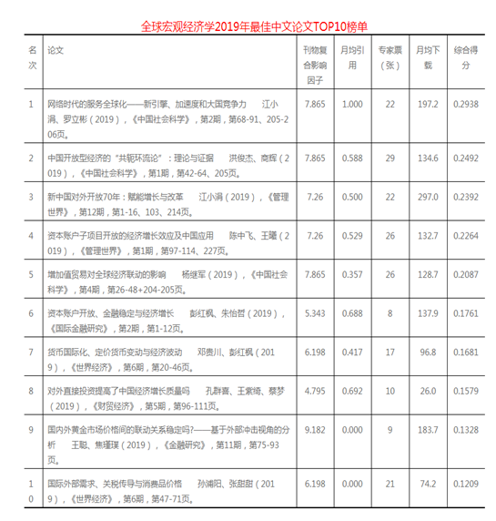 《世界经济年鉴》由中国社会科学院世界经济与政治研究所主办。该年鉴自2015卷始设“最佳论文”栏目,以评价当年“世界经济学”及各子学科十佳中文论文和十佳英文论文。候选论文的名次基于引用数据、专家投票数、下载数和论文所在期刊的影响因子最终确定。候选论文选自最具影响力的全球中英文相关期刊各31份。论文引用数据、下载数和期刊影响因子均来自中国知网(中文)或谷歌学术(Scholar Google)。参与投票的专家均为全国高校和研究机构的一线相关学者,合计2300余人,包括中国世界经济学会理事400人。