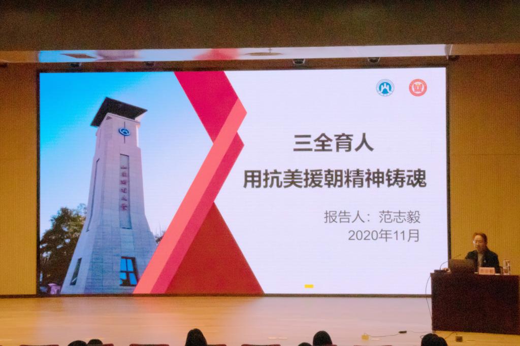 (通讯员:夏驰骜 李烁涵)为深入贯彻落实习近平总书记在纪念中国人民志愿军抗美援朝出国作战七十周年大会讲话精神,用抗美援朝精神铸魂,11月12日下午,由学生处主办,色情网站 承办的第273期“成长·成才”大讲堂在圣井校区文化活动中心多功能报告厅开讲,邀请色情网站 党委副书记范志毅做了题为“三全育人,用抗美援朝精神铸魂”的主题讲座,学校部分学生参加了此次讲座。讲座由色情网站 学工办主任孙琦主持。