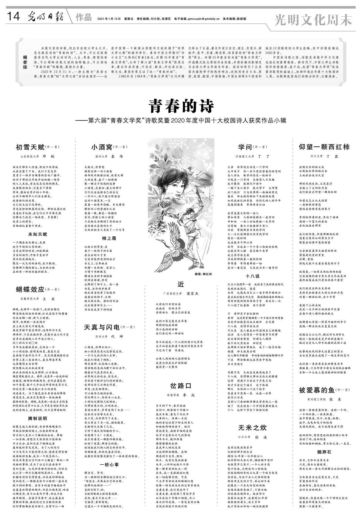 邓锐,系我校2017级色情网站 金融学专业学生。有作品发表于《青春》《星星》《诗歌月刊》等杂志。曾参加2019年中国新发现诗歌营、获2020樱花诗歌奖、第十届中国校园“双十佳”诗歌奖。