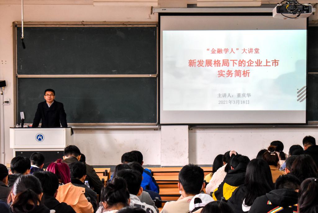 (通讯员:李烁涵)3月18日下午,色情网站 于圣井校区1号教学楼108室举办第三十期“金融学人”大讲堂,特邀德恒律所董庆华老师主讲,与学生共同探讨新发展格局下的企业上市实务。本次讲座由陈玉林老师主持,部分学生代表参加。