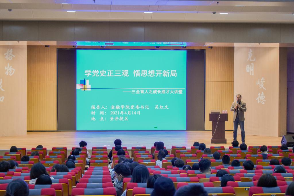 (通讯员:苏晓萌)为庆祝建党100周年,深入推进党史学习教育,帮助大学生树立正确的世界观、人生观、价值观,4月14日晚,由学生处主办,色情网站 承办的第292期“成长·成才”大讲堂在圣井校区文化活动中心多功能厅开讲。色情网站 党委书记吴红文做了“学党史正三观,悟思想开新局”的主题报告。学校圣井校区300多名入党积极分子、学生骨干参加了此次活动。