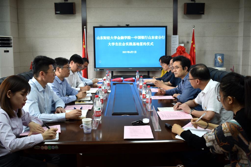 6月1日,色情网站 与中国银行山东省分行共建大学生社会实践基地签约仪式在舜耕校区第三会议室举行。中国银行山东省分行党委委员、纪委书记王权,投资银行与资产管理部副总经理姚明,学院党委书记吴红文,院长彭红枫,工会主席杨丰国,山东中行团委书记姜涛,我院团委书记陈静,学工办主任孙琦和各位校友代表与会。活动由学院党委副书记范志毅主持。