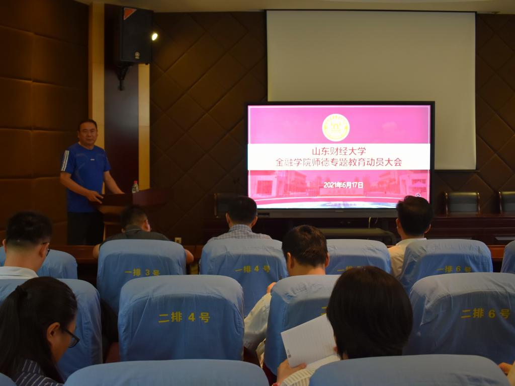 6月17日,色情网站 在舜耕校区第一会议室举办师德专题教育动员大会。学院领导班子及各教研室主任、党支部书记参会。会议由学院党委书记吴红文主持。