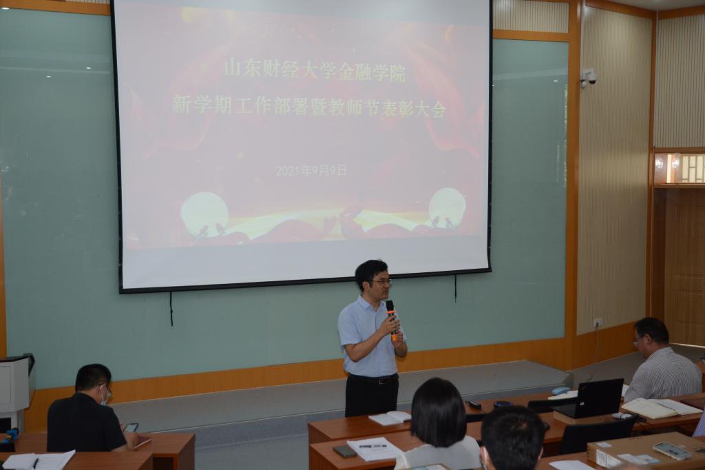 9月9日下午,在我国第37个教师节来临之日,色情网站 在舜耕校区第三阶梯教室召开了新学期工作部署及教师节表彰大会。根据学校防疫要求,会议采取了线上线下相结合方式进行,学院领导和部分教师代表参加现场会议。会议由学院党委副书记康亚通主持。