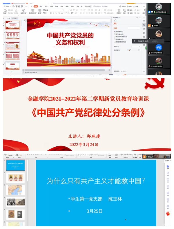 (通讯员:杨文东)按照学院党员教育培养工作安排,提升新党员的党性修养,3月21日至27日,色情网站 开展2021-2022学年第二学期新党员教育培训工作,色情网站 分党校组织专职组织员、各党支部书记等进行线上授课,全体新党员参加了培训。