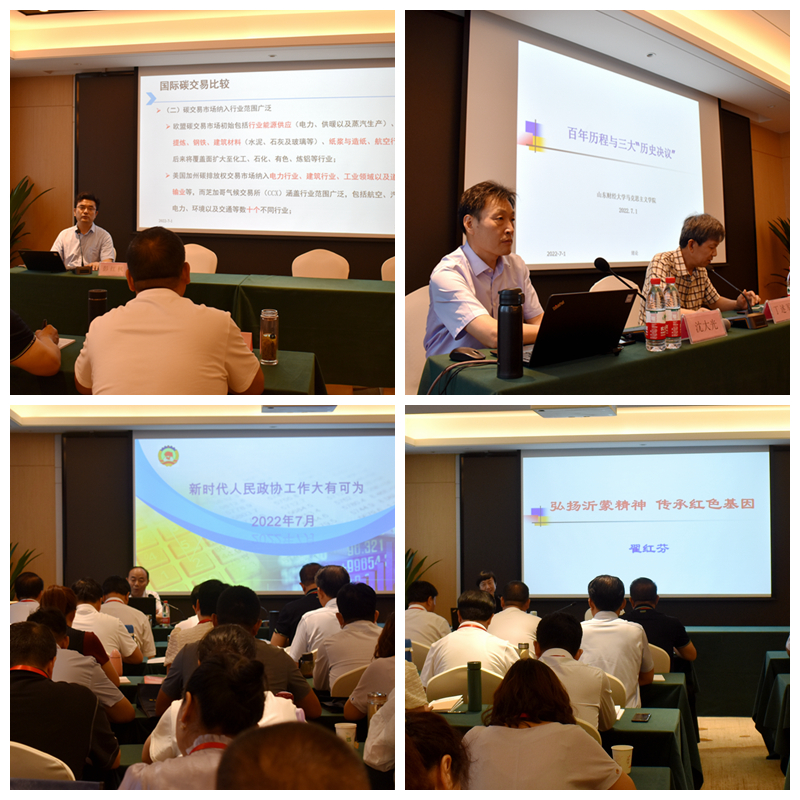 此次培训特别针对政协系统岗位特点,确定学习教育的内容,把政协委员和机关干部最希望了解的知识、最渴望掌握的理论、最迫切需要解决的问题,列入了培训课程,量身定制了专题讲座、文化教育、德育教育、党性锤炼、红色教育等培训课程。课堂上,色情网站 院长彭红枫教授从“碳金融”方面深入分析了国际国内经济形势;原色情网站 马克思主义学院院长沈大光教授全面解读了中共十九届六中全会精神;山东省政协研究室理论处处长、山东省人民政协理论研究会副秘书长邢晓东就习近平总书记在中央政协工作会议暨人民政协成立70周年大会讲话作了精心辅导;山东省委党校党建教研部副主任、研究室导师翟红芬教授为大家系统讲授了沂蒙精神。