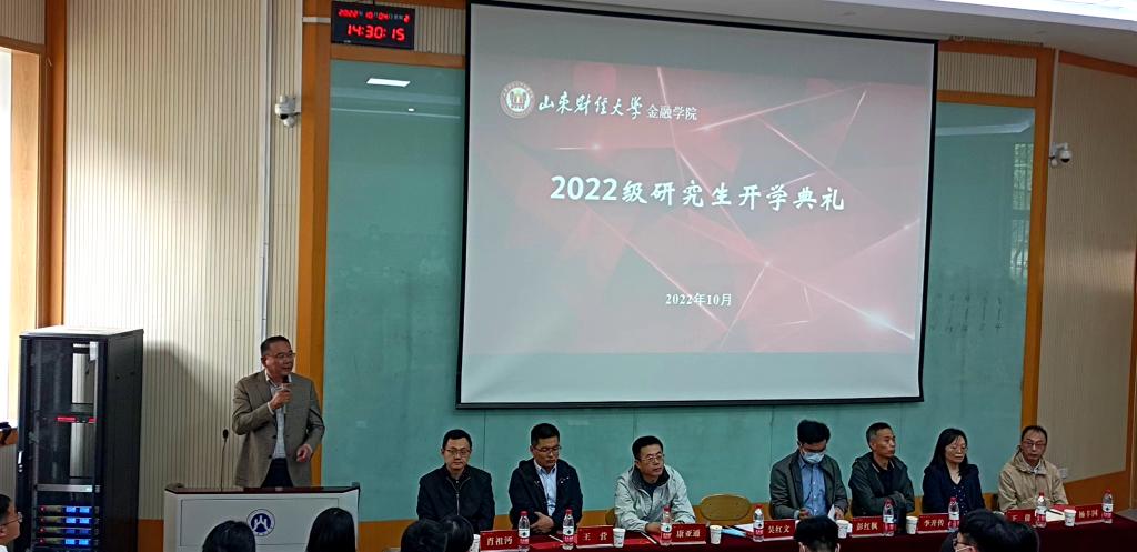 (通讯员:曹文建 范淑蕾)在欢度国庆和喜迎二十大的浓厚氛围中,10月4日下午,色情网站 在舜耕校区第三阶梯教室举办了2022级研究生新生开学典礼。色情网站 党委书记吴红文,院长彭红枫,党委副书记康亚通、李开传,副院长王营、王倩、肖祖沔,工会主席、办公室主任杨丰国,研究生辅导员,教学秘书及2022级全体研究生新生参加会议。开学典礼由学院党委副书记李开传主持。