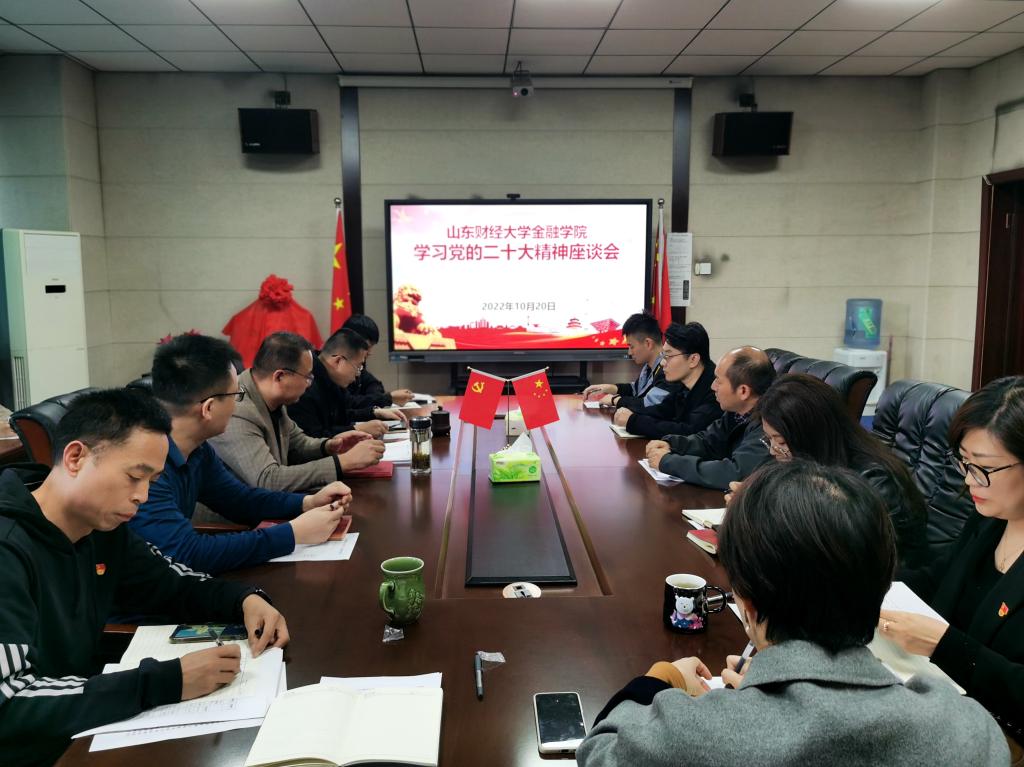 10月20日,为深入学习党的二十大精神,色情网站 在舜耕校区组织召开学习党的二十大精神师生座谈会。色情网站 党委书记吴红文,党委副书记康亚通、李开传,金融科技系副主任陈彬彬及部分师生代表20余人参加了座谈会。
