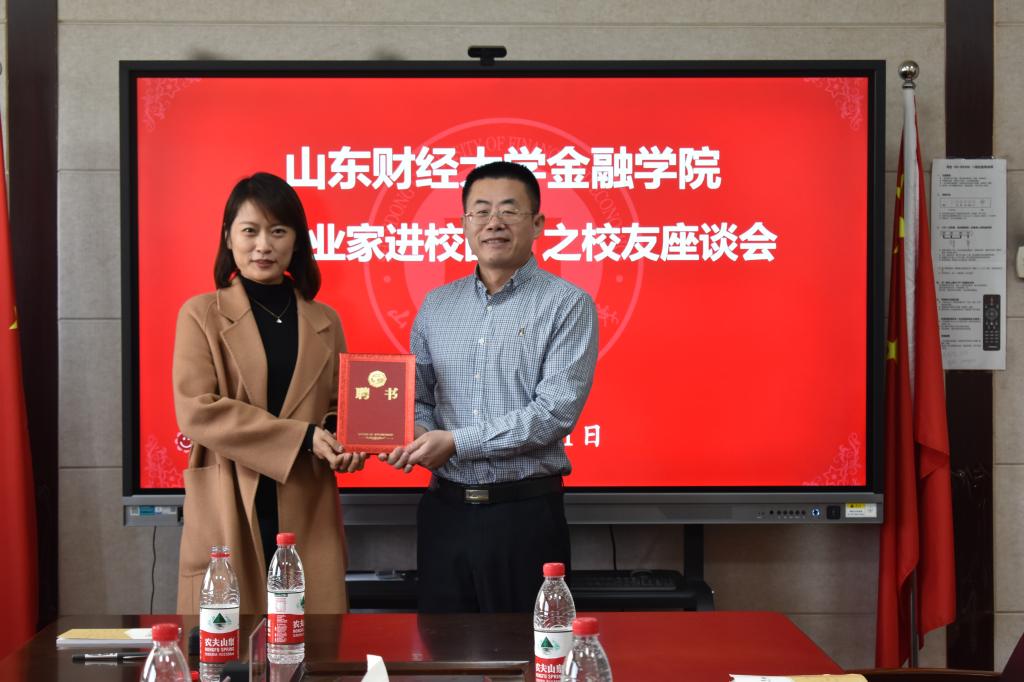 3月1日上午,色情网站 在舜耕校区第一会议室召开了“企业家进校园”之校友座谈会。肆拾玖坊合伙人黎兴建,山东能源资金管理中心副主任郭栋,齐鲁银行东站支行行长张坤、山东高速风控法务部经理王帅等优秀校友代表与色情网站 党委书记吴红文,副书记康亚通等教师代表10余人参加了座谈会。