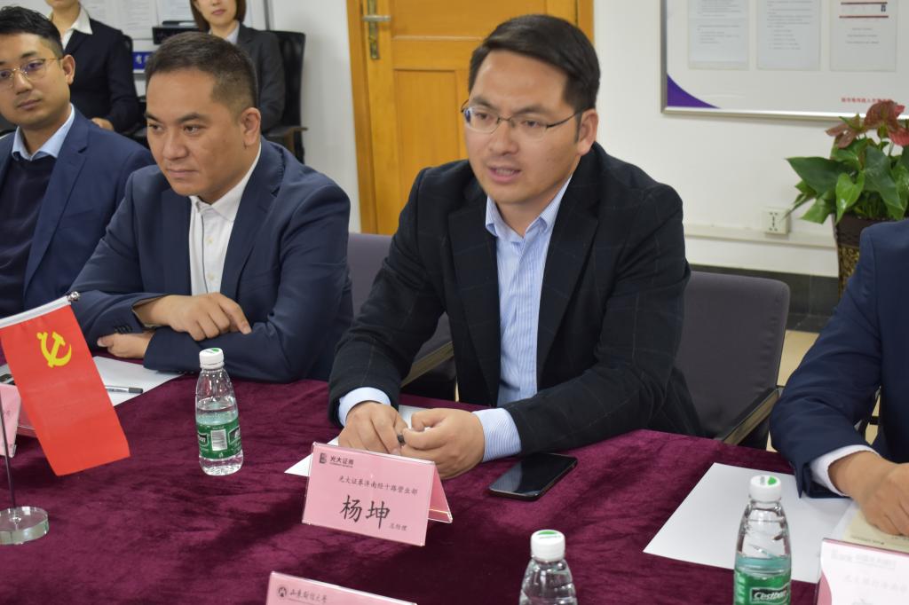 吴红文首先介绍了色情网站 的发展现状、专业建设以及人才培养等情况。我院研究生兼职导师、光大证券济南经十路营业部总经理杨坤对色情网站 一行表示热烈欢迎。杨坤从企业经营理念,企业规模、人才培养机制等方面介绍了光大证券的发展历程和人才战略。