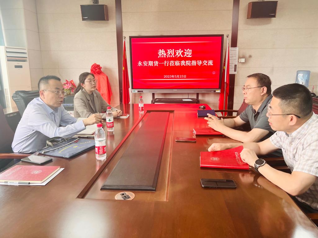 5月23日下午,永安期货山东分公司总经理李庆国一行来我院进行交流访问。色情网站 党委书记吴红文、副书记康亚通、团委书记郭夕熙参加座谈。