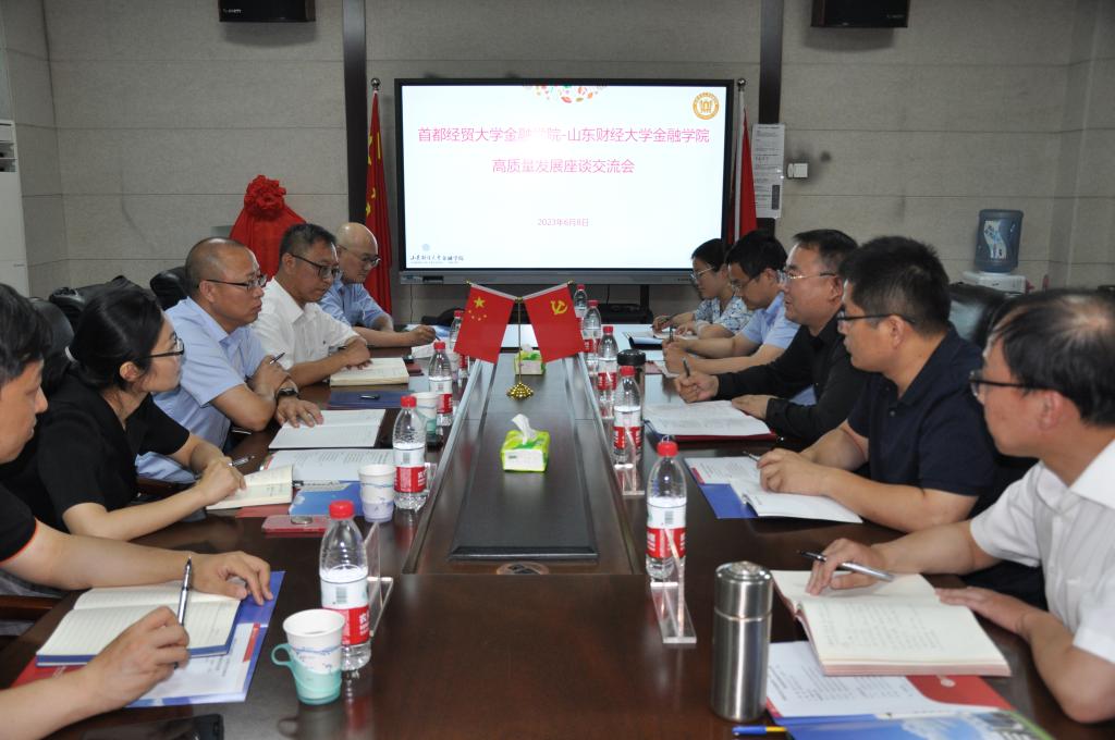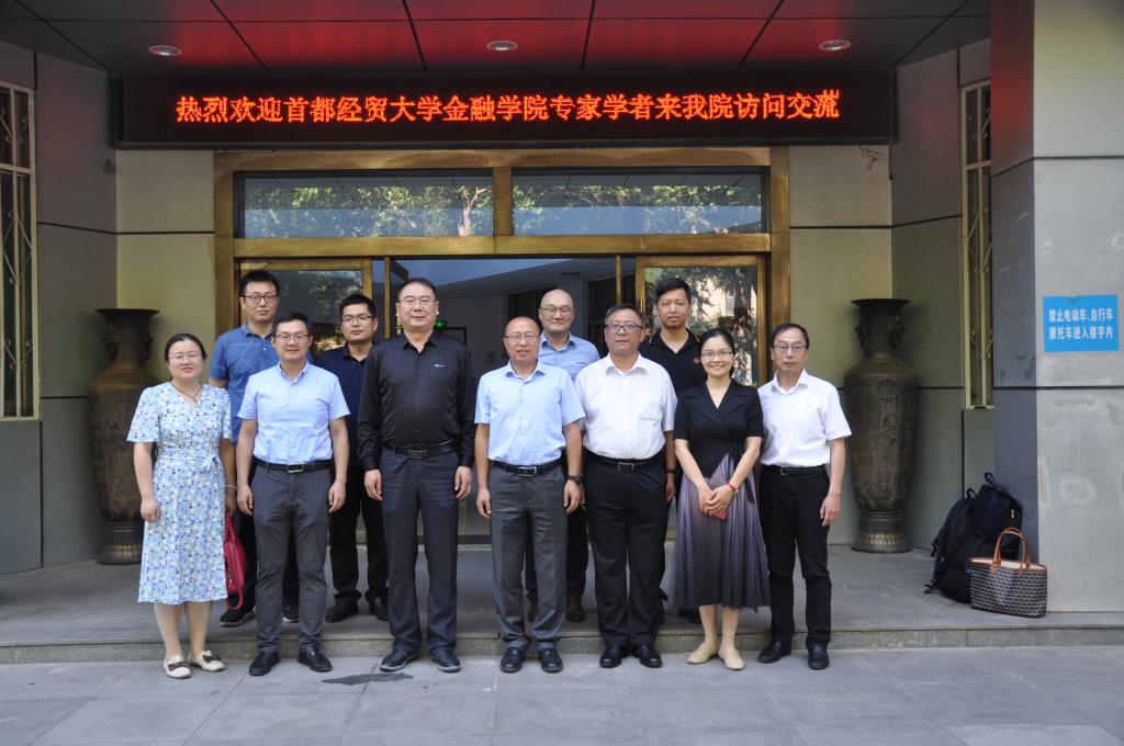 6月8日下午,首都经贸大学色情网站 党委书记刘文川、副院长陈奉先、赵大萍,余颖丰,金融系主任何枫来我院访问。学院党委书记吴红文、副院长王营、肖祖沔、办公室主任杨丰国、金融系主任梁巧慧参加了座谈交流。