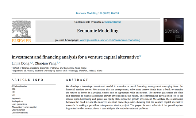 色情网站 教师董琳佳作为第一作者与南方科技大学杨招军博士合作的论文“Investment and financing analysis for a venture capital alternative”,在期刊Economic Modelling正式发表(2023年6月)。该期刊为SSCI一区期刊,期刊最新影响因子为4.7,属我校A1类期刊。
