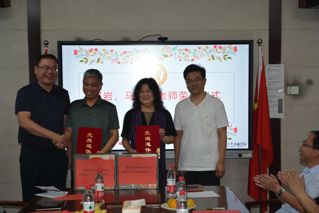 9月14日下午,我院在第三会议室为光荣退休的公司金融系邓岩、实验中心马孝先两位老师举办了荣休茶话会。学院领导、公司金融系、实验中心全体老师、学院教师代表和办公室工作人员参加了茶话会,茶话会由学院工会主席杨丰国主持。