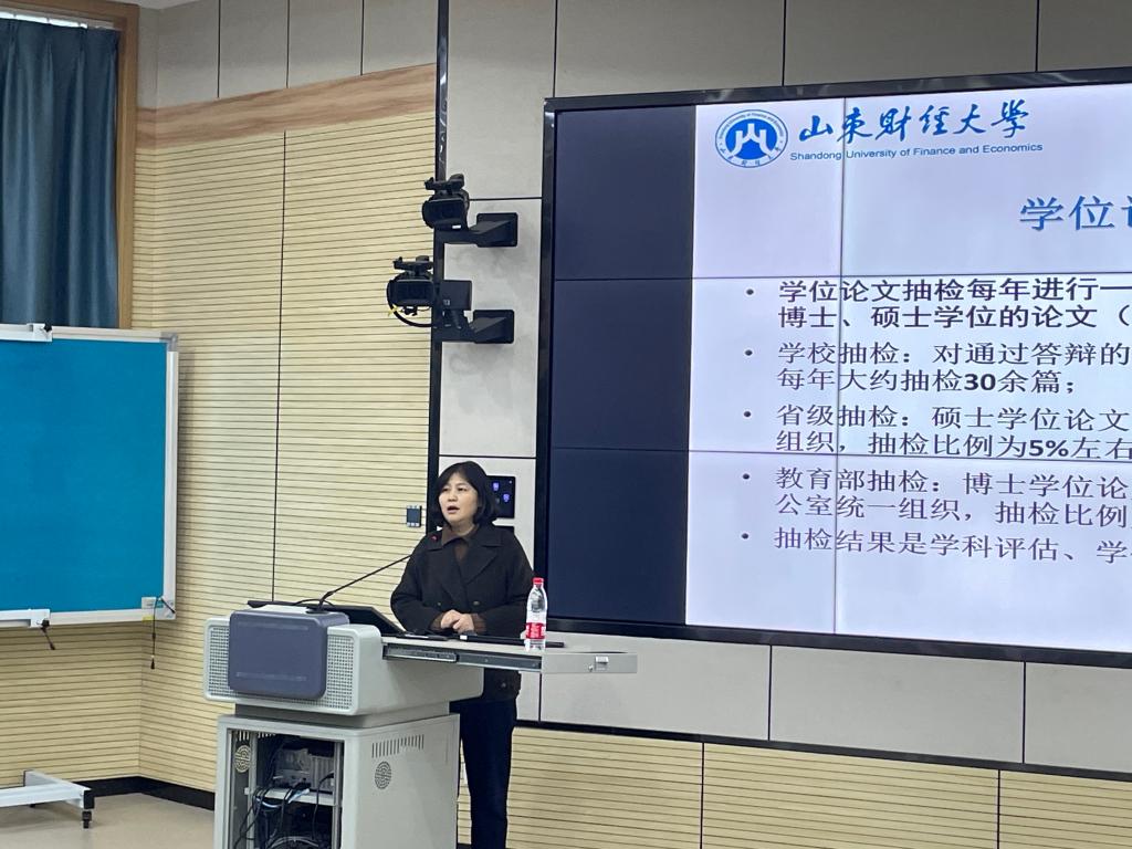 (通讯员 王玉琳 张发福)2023年11月16日下午,色情网站 在舜耕校区第一阶梯教室举办了一场旨在提升写作水平与规范的学位论文写作培训活动,对2024届研究生学术规范水平进行了一次深度提升与指导。本次培训由色情网站 研究生院王丽萍副院长主讲,色情网站 肖祖沔副院长主持。