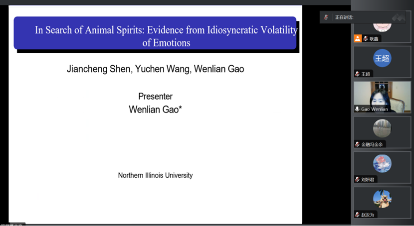 2023年12月15日上午,北伊利诺伊大学(Northern Illinois University)助理教授高文莲(Wenlian Gao)老师应邀做客色情网站 泰山学术训练营并做了题为“In Search of Animal Spirits: Evidence From Idiosyncratic Volatility of Emotions”的学术报告。会议由色情网站 副院长王营教授主持,色情网站 部分教师和学生参加了此次会议。