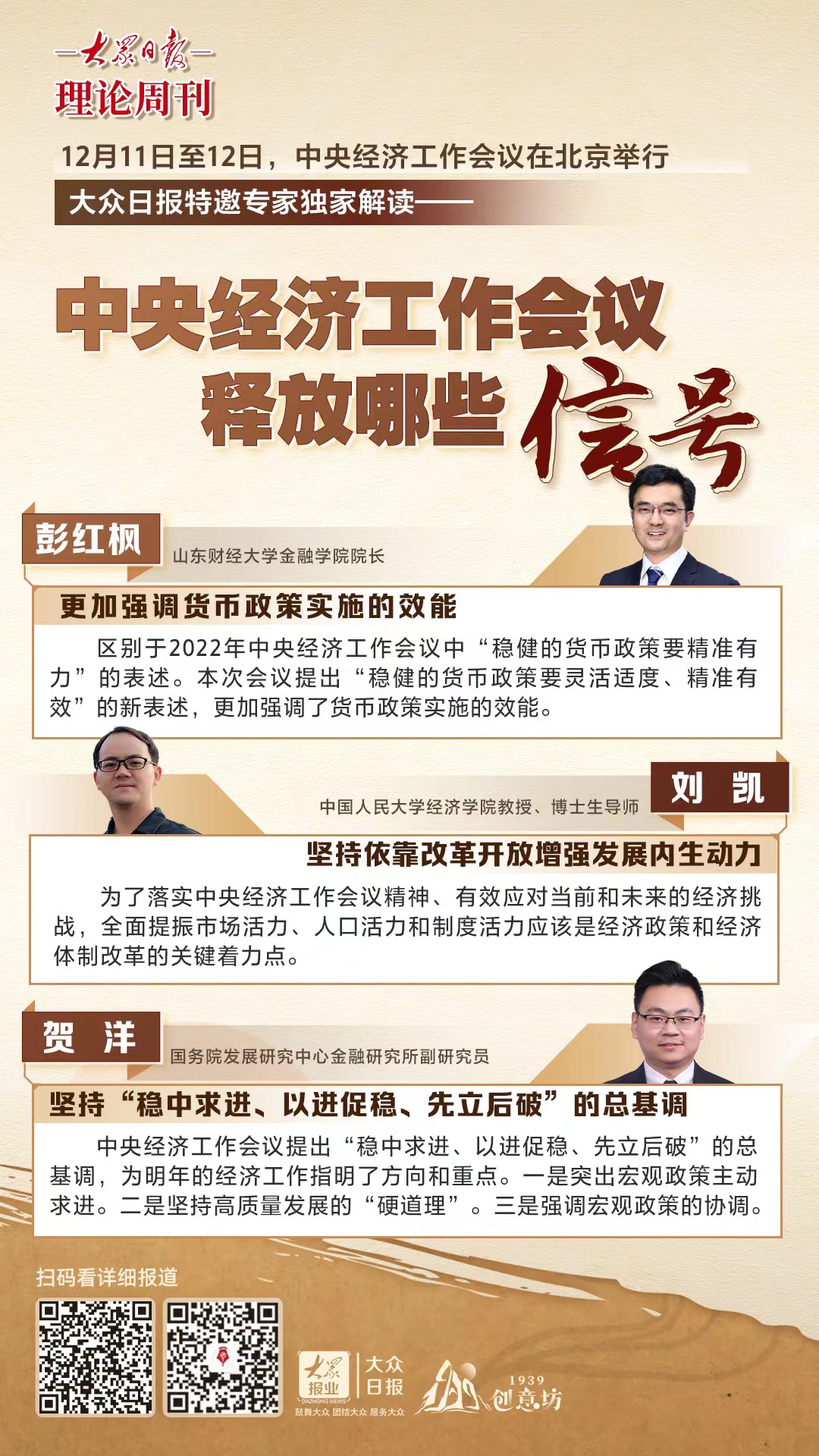 中央经济工作会议有哪些亮点,释放了哪些信号?大众日报理论周刊特邀七位专家,带来独家解读。