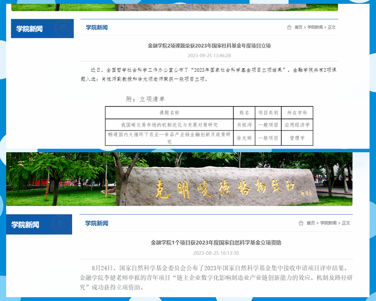 四、4月11日,教育部发布了《关于第二批国家级一流本科课程认定结果的公示》,我院《金融学》(线上)获批第二批国家级一流本科课程。这是继2022年我院《金融工程》(线下)、《金融学》(线上线下混合式)、《证券投资学》(线上线下混合式)三门课程获批第一批国家级一流本科课程后又一门课程入选国家级一流本科课程。至此我院共有4门国家级一流本科课程,另外还有《证券投资学》(线上)、《国际结算》(双语)(线上线下混合式)、《公司金融》(线上线下混合式)、《金融资产管理运营》(虚拟仿真)4门山东省一流本科课程。