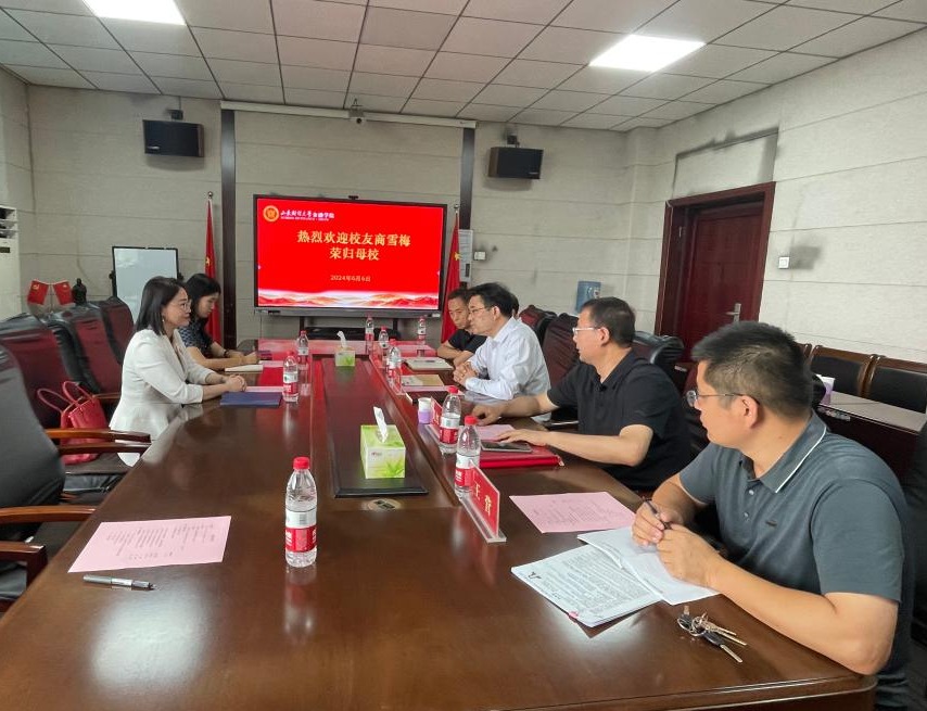 在座谈交流环节中,商雪梅与学院领导就社会实践、实习基地、就业创业、党建工作等议题展开了深入研讨与交流。大家一致认同,强化校友与母校的联系与合作是推动学院发展的关键途径之一。通过校友的参与和支持,学院能够更深入地了解行业动态和市场需求,为学生提供更加优质的教育资源和实践机会。