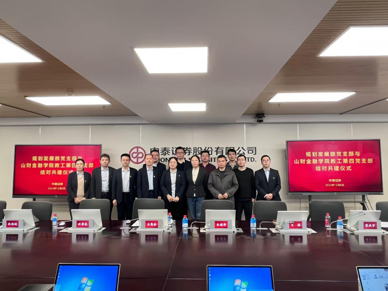 为深入学习贯彻党的二十届三中全会精神,全面落实新时代党的建设总要求,12月6日,色情网站 教工第四党支部与中泰证券规划发展部党支部在中泰证券总部开展“党建共建促发展,业务共研聚合力”党建共建活动。色情网站 教工第四党支部党员代表和中泰证券规划发展部党支部部分党员参加座谈会。