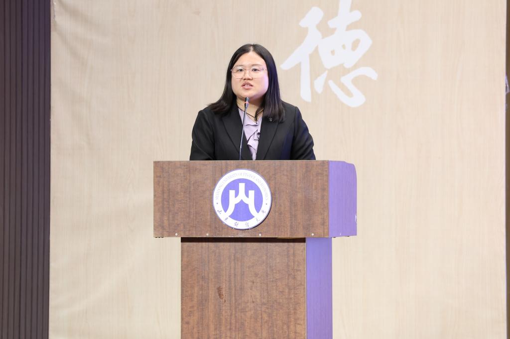 学生代表曹睿结合自身丰富的社会实践经验,从多方面分享社会实践的价值与方法。她表示,实践是青年成长的必修课,身为青年的我们不仅要深入了解国情,强化责任意识,而且要将所学的专业理论知识与社会实践充分结合,躬身力行,凝聚合力。她号召同学们借“三千计划”投身强国建设,在社会课堂中“受教育、长才干、作贡献”,以青春力量服务国家发展。
