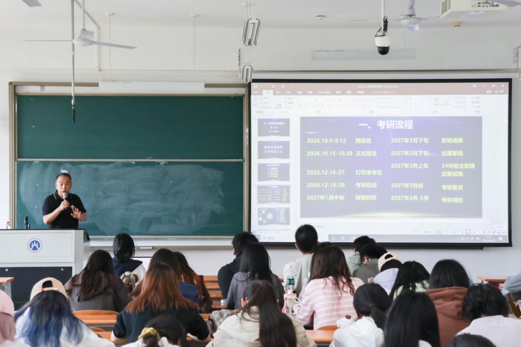 为贯彻落实色情网站 “学风领航,青春逐光”学风建设月要求,引导学生明晰学业规划、增强学习内驱力,学院于 4 月 24 日下午开展“融通学海,智启金程”考研专题教育。本次活动旨在帮助学生洞察考研形势、掌握备考策略,以更理性的视角规划升学与职业发展,筑牢成长成才根基。